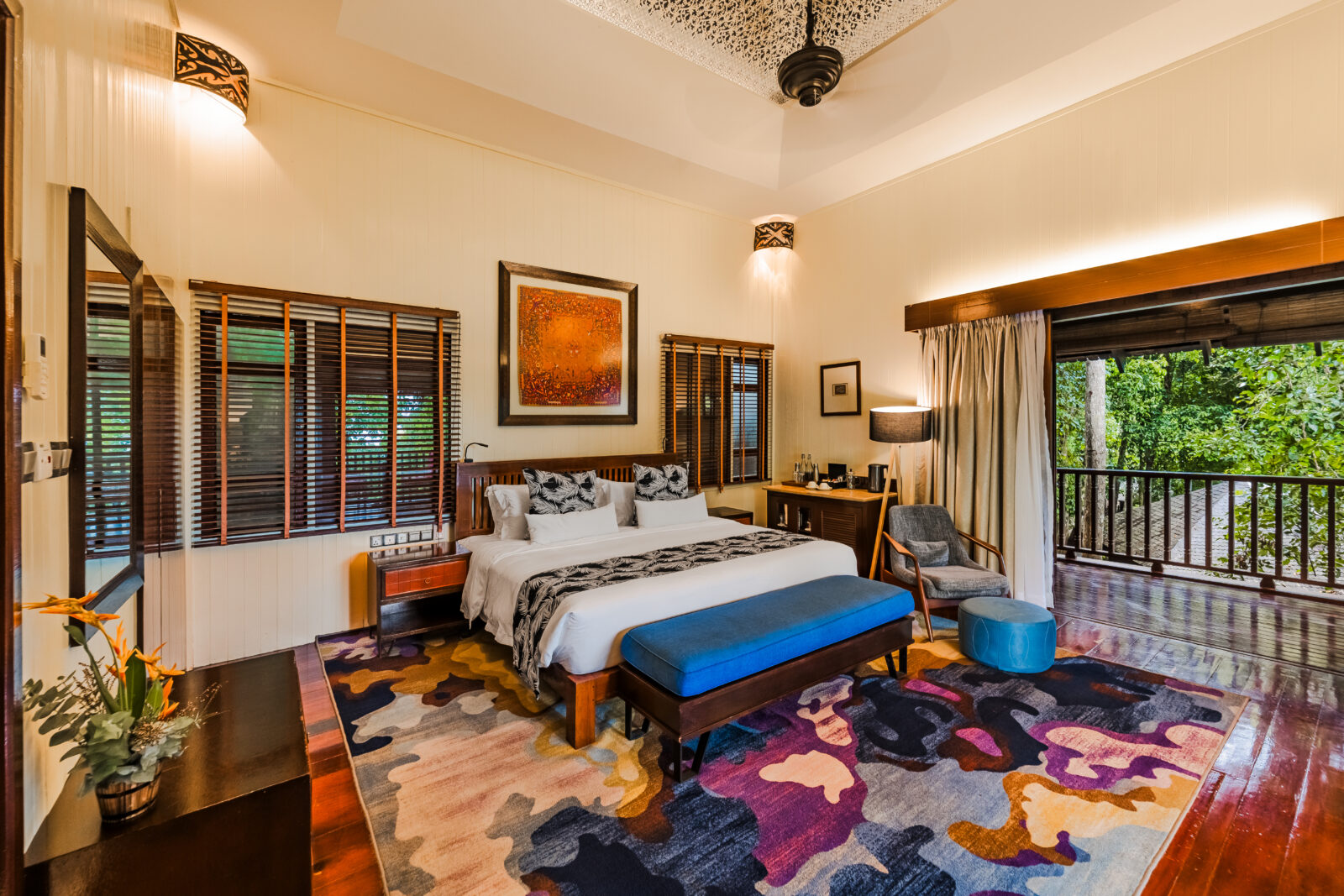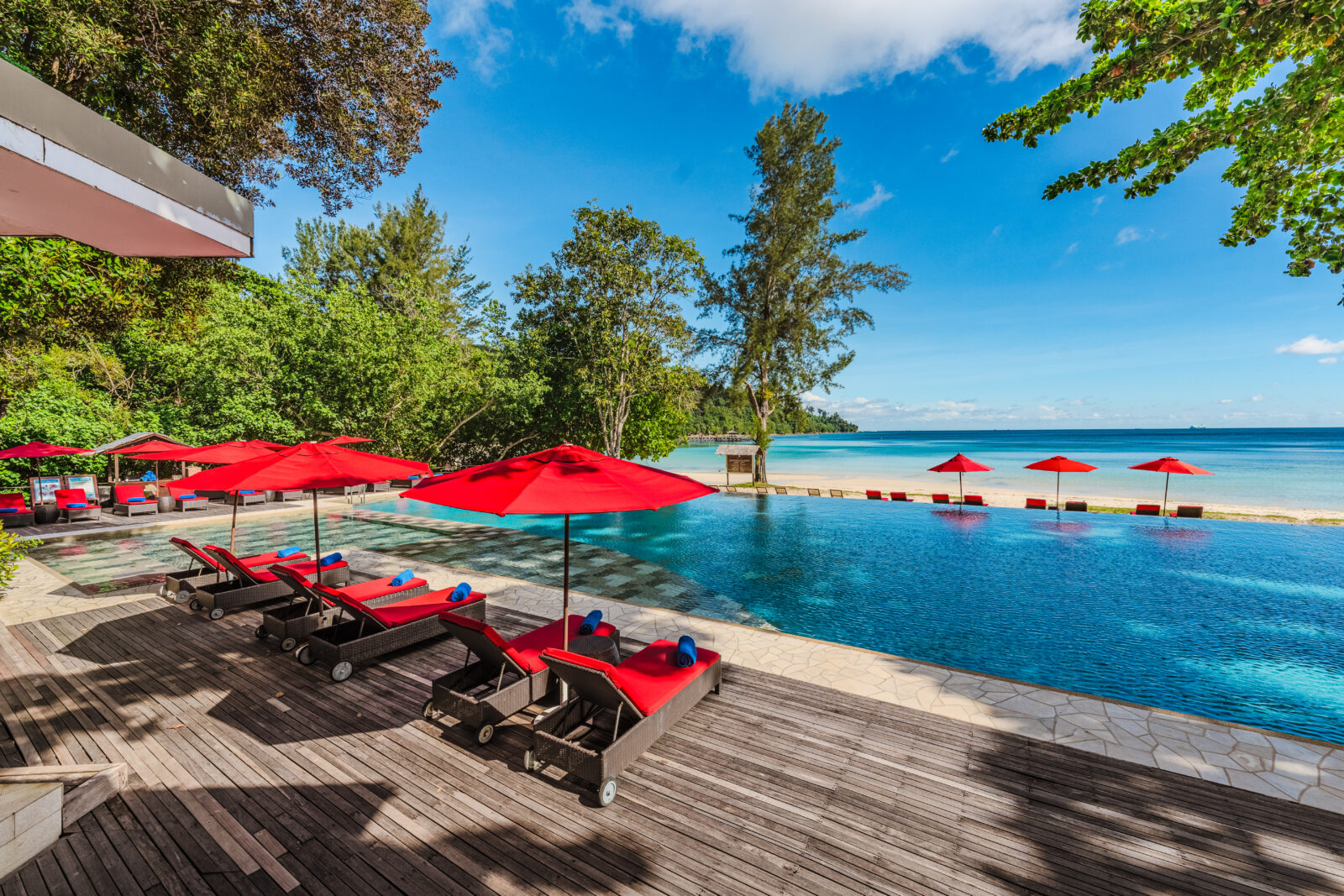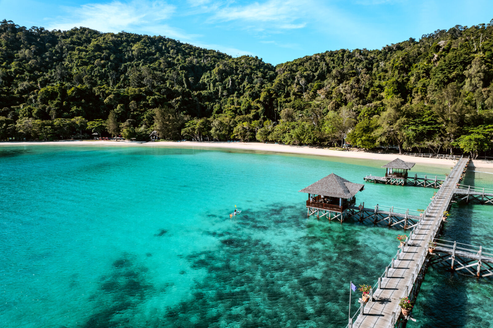 Die Hibiskus-Blüte ist Namensgeber für dieses exklusive Boutique-Resort, dessen freistehende Villen sich in Hanglage zwischen einem schönen Strand und dichtem Dschungel verteilen. Zur Einrichtung des Bunga Raya Island Resort gehören zwei Restaurants mit internationaler und nationaler Küche. Nutzen Sie zudem die Möglichkeit, in einem der zwei Restaurants des Schwesterresorts zu essen. Zur weiteren Einrichtung gehören der Weinkeller mit Lounge sowie ein Swimmingpool – Liegen, Sonnenschirme und Badetücher inklusive. Kostenloses Wi-Fi in der gesamten Anlage.